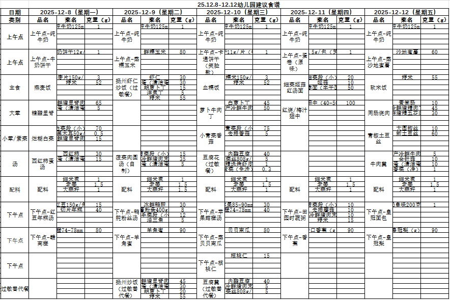 幼儿食谱(12.8-12.12)