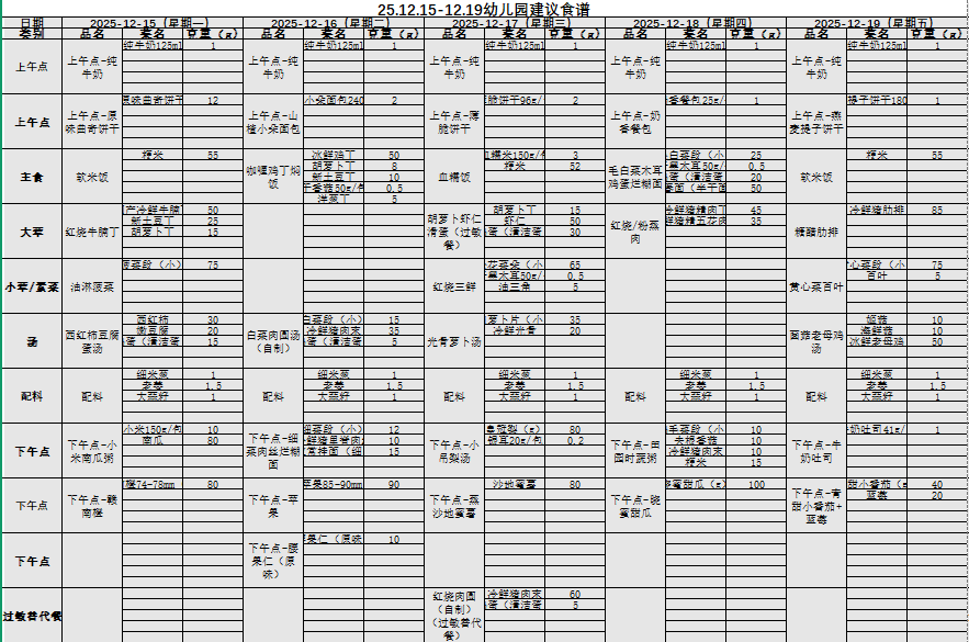 幼儿食谱(12.15-12.19)