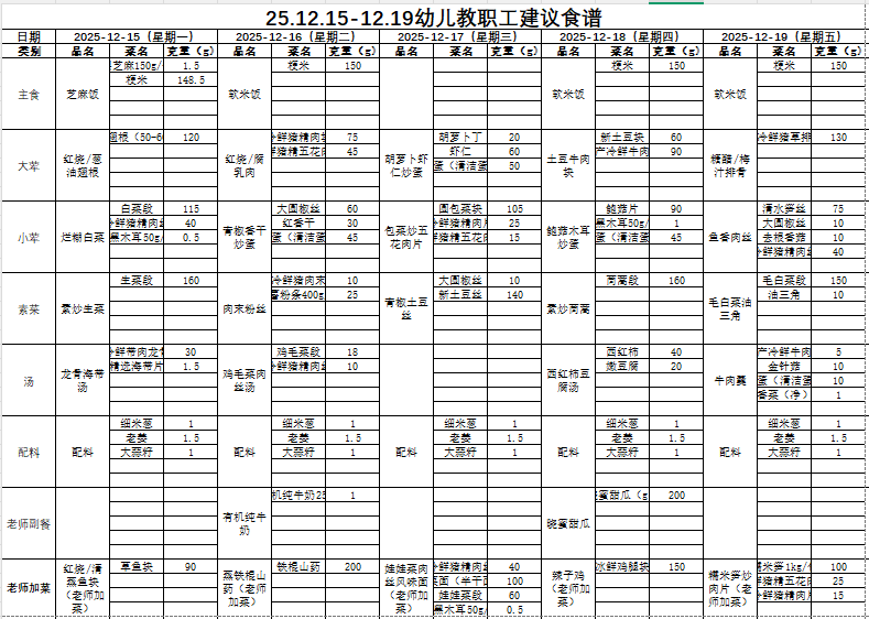 幼儿食谱(12.22-12.26)